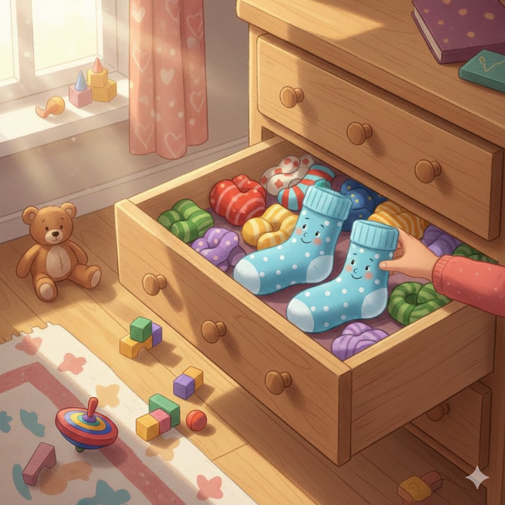 U velikoj drvenoj fioci, u sobi male Ane, živele su dve čarape blizanke – Cveta i Peta. Bile su potpuno iste – plave sa belim tačkicama, mekane i tople.