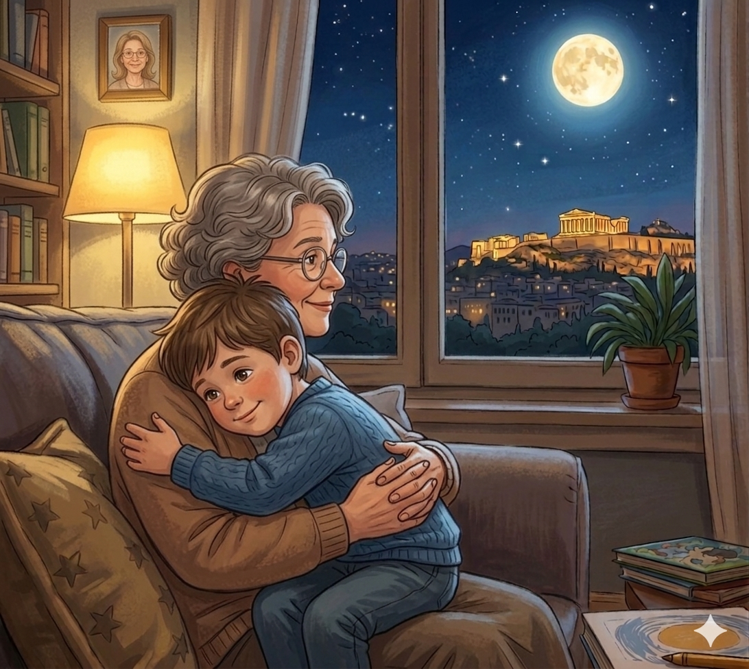 Jedne večeri, mali Dušan gleda mesec i poželi da vidi svoju baku. Ubrzo otkriva da ih isti mesec spaja, ma koliko daleko bili.