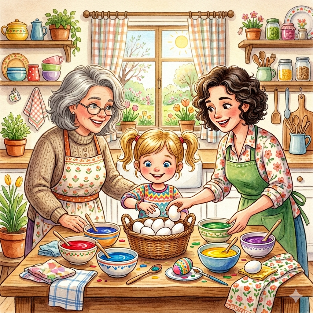 „Spremne smo za farbanje jaja!“ — dodala je tetka Nina veselo.