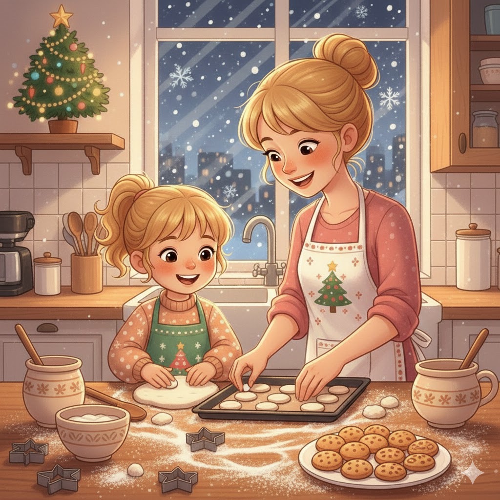 Celog popodneva kuhinja je bila puna smeha. Irini je pravila male loptice od testa. Prsti su joj bili beli od brašna, a mama joj je, kroz smeh, posula malo šećera u prahu po nosu.