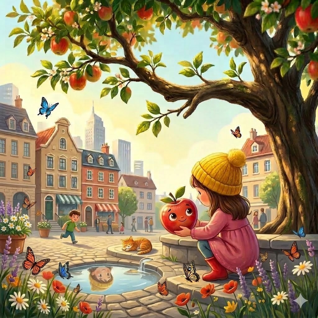 Kod kuće, Ana je rekla: „Mama, ovo je moja jabuka. Našla sam je napolju.“ Mama se nasmešila. „Lepa je. Jesi li gladna?“ Ana je pogledala Jacu. „Malo. Ali hajde prvo da je operemo i stavimo na sto.“