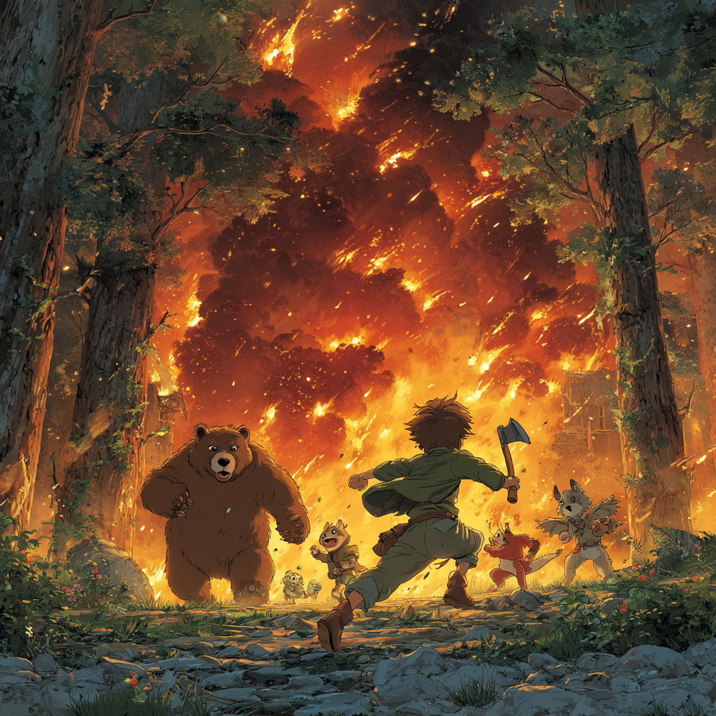 Bez razmišljanja skočio je na konja i pojurio kao munja kroz noć. Nebo iznad šume bilo je crveno kao krv, a plamen je gutao stabla. Životinje su panično bežale!