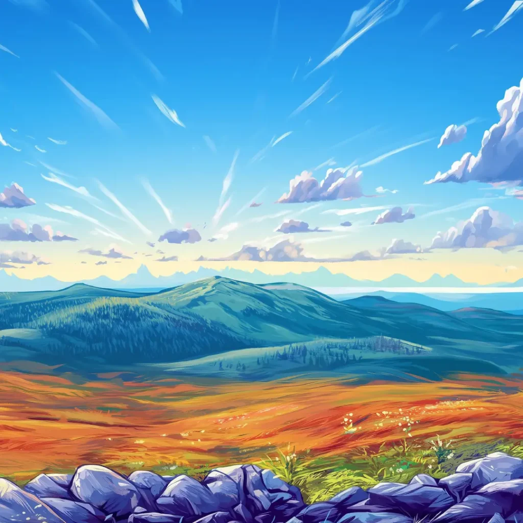 Kako je to izgovorio, družina se našla okružena nepreglednim zelenim visoravnima. Vetar je šuštao kroz visoku travu, a u daljini se pružala planina blagog nagiba, prekrivena grmljem i šumarcima.