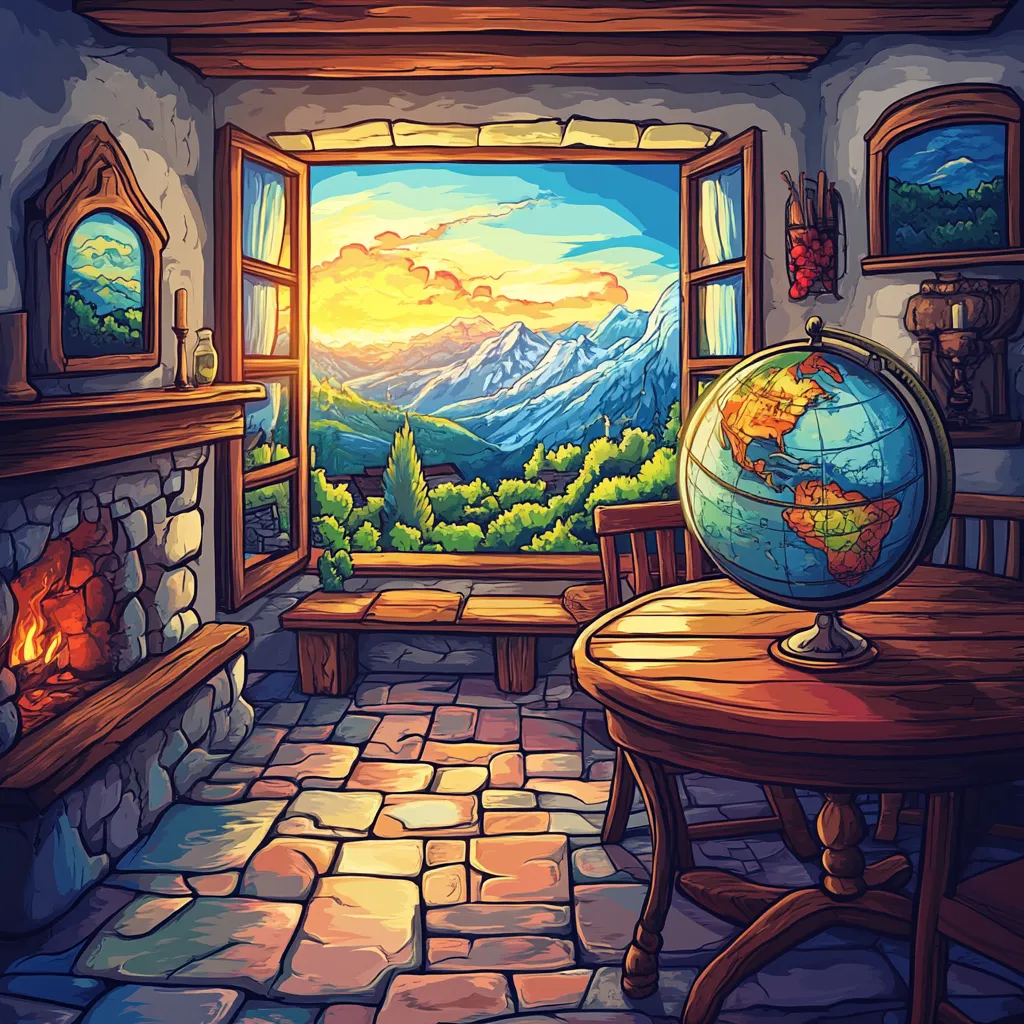 Pele je za trenutak napustio prostoriju, a kada se vratio, u rukama je imao nekakav stari globus. Njegova površina bila je iskrzana, a kontinenti su svetlucali pod svetlom lampe. Kada ga je zavrteo, iz globusa su se podigli svetlosni zraci koji su iscrtavali prelepe pejzaže, doline reka, nepregledne ravnice, prerije, savane, šume i jezera i naravno, planinske masive i vrhove. Iznenada, prostorija se pretvori u magičnu virtualnu 3D projekciju planete Zemlje.