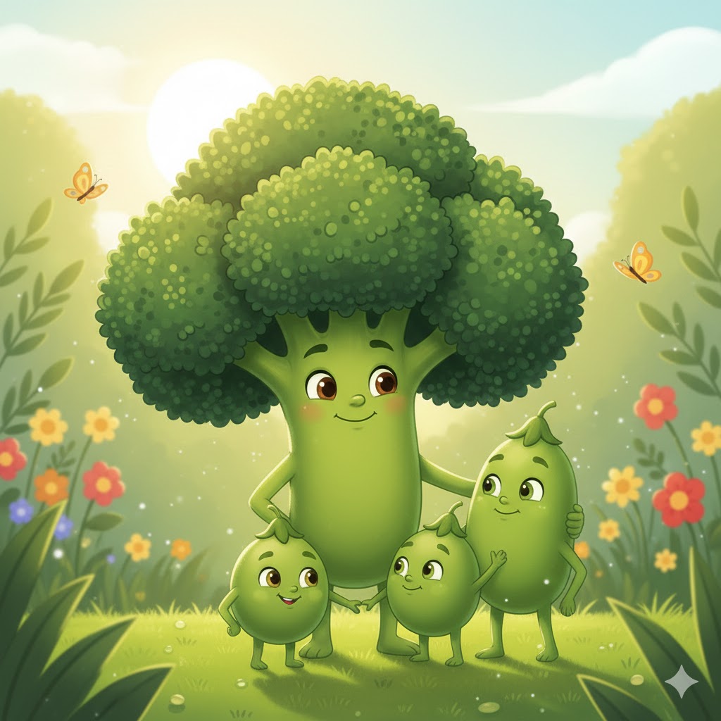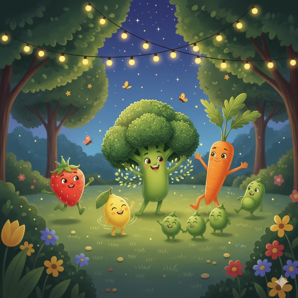 Šargarepa je polako otvorila oči i nasmešila se. Bojan Brokoli se protegao. Tri brata Graška — Mali, Srednji i Veliki — iskotrljala su se iz svoje mahune. A Limun je ležao na suncu i pravio se da još spava, iako se smeškao.